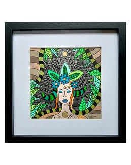 La Gardienne des Mondes Intérieurs - Tableau d'art contemporain réalisé au marqueur acrylique type Posca sur papier pur coton 300g. Format 20x20cm. Cadre MDF noir (fibres de bois). 2025.
